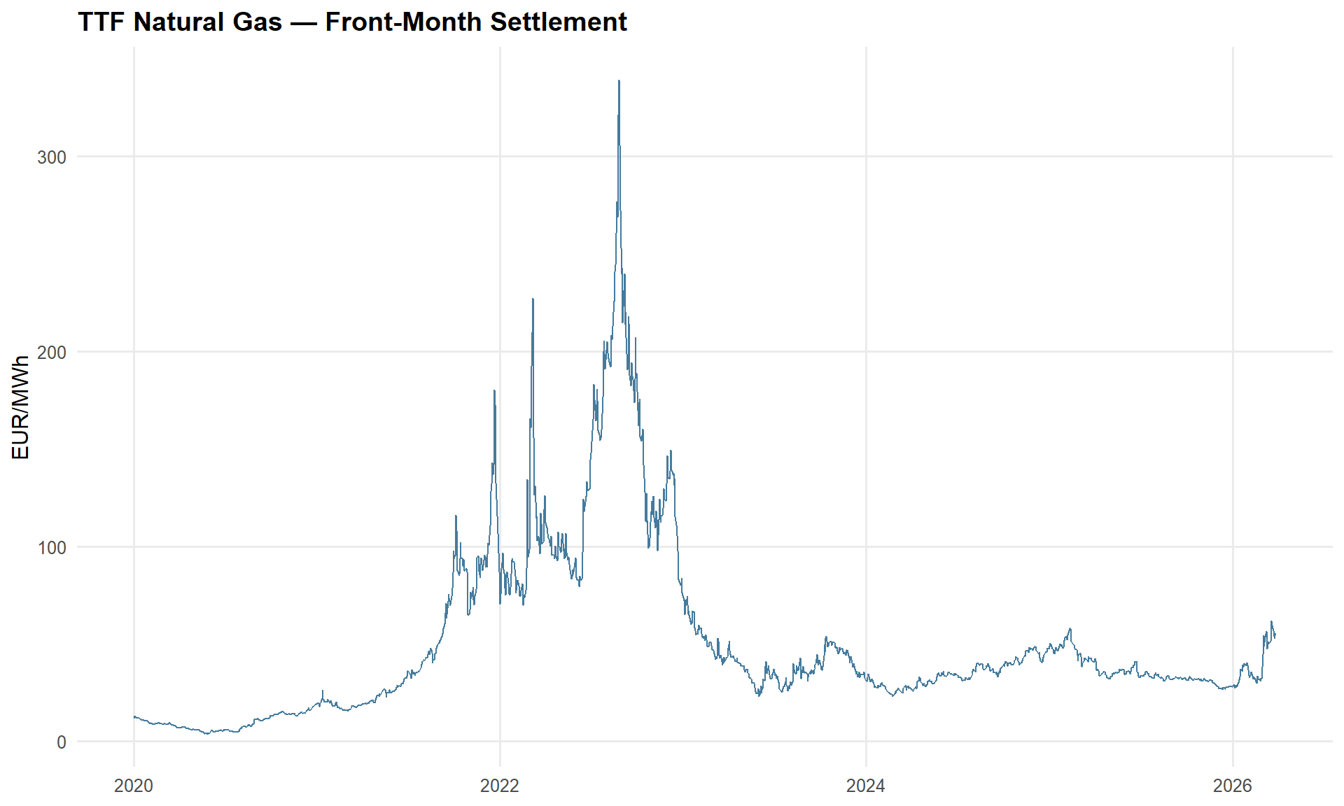 "| max:", round(max(ttf_daily$ttf_eur_mwh), 1), "EUR/MWh"
